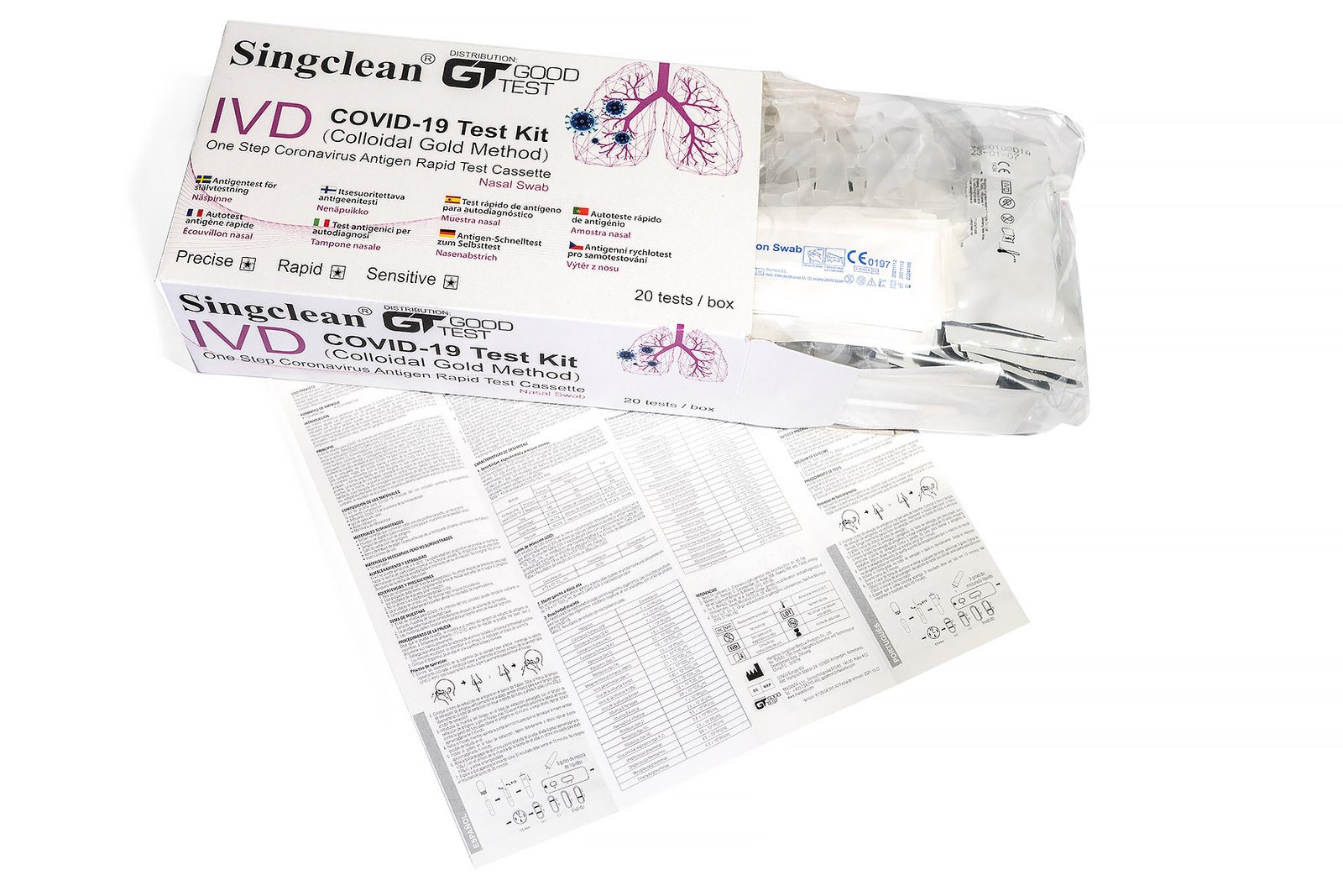 Singclean COVID-19 Test Kit (metóda koloidného zlata) je imunochromatografický test na pevnej fáze pre rýchle a kvalitné odhaľovanie antigénu z COVID-19 vo vzorke ľudského nosového výteru. Tento test poskytuje iba predbežný výsledok testu. Preto musí byť akákoľvek reaktívna vzorka s testovacou súpravou COVID-19 (metóda koloidného zlata) potvrdená alternatívnymi testovacími metódami a klinickými nálezmi.